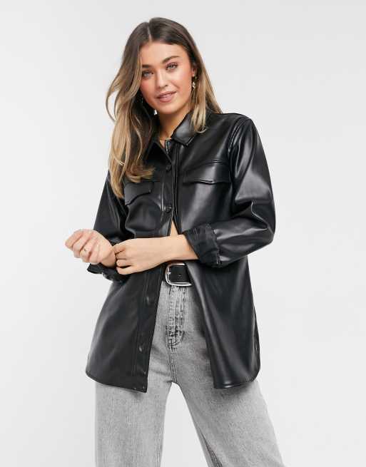 Product Name: Leather shirt jacket womens discount