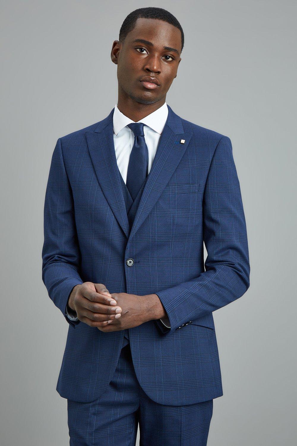 Product Name: Navy check skinny fit suit discount