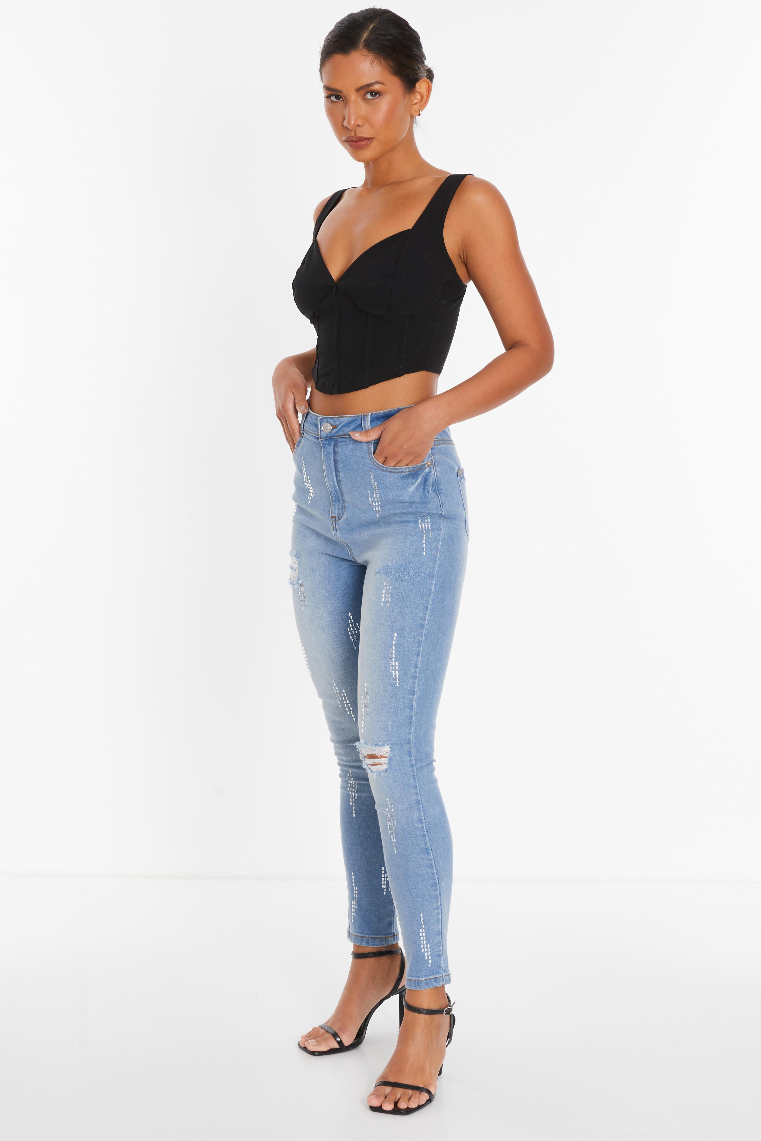 Product Name: Quiz embroidered jeans discount