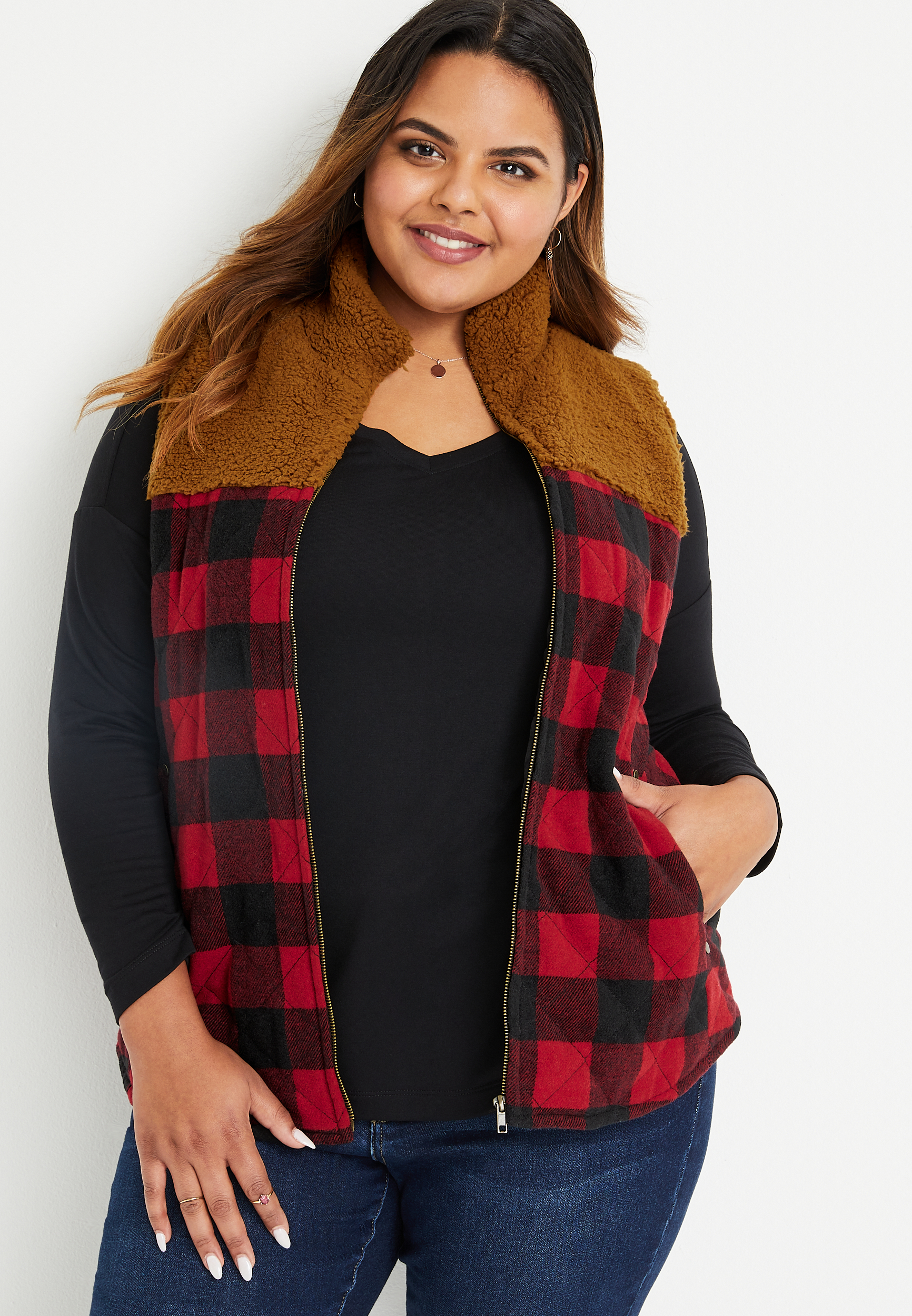 Product Name: Buffalo plaid plus size vest discount