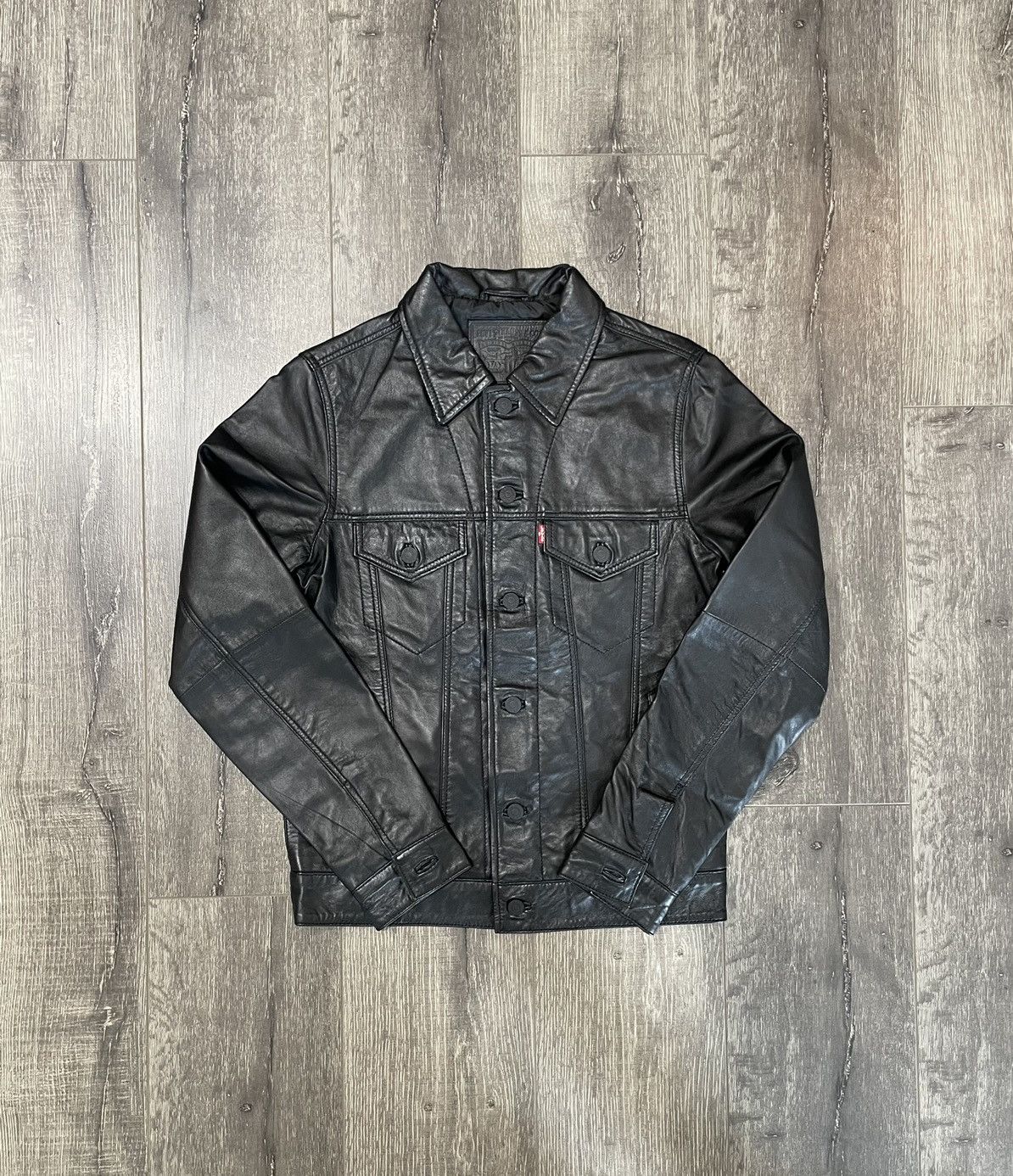 Product code: Levi's black leather trucker jacket discount