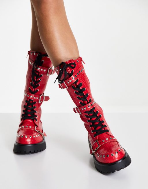 Product code: Red knee high lace up boots discount