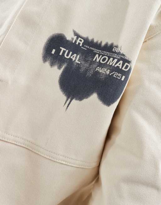 Product code: Bershka pocket front utility denim jacket in beige discount